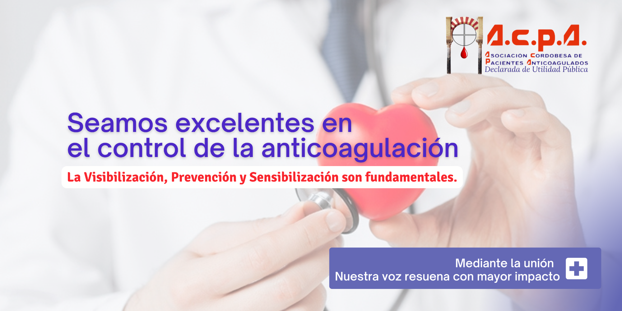 La Asociación Cordobesa de Pacientes Anticoagulados (A.C.P.A.) es una entidad comprometida con la mejora de la calidad de vida de las personas anticoaguladas en Córdoba y provincia. Trabajamos para brindar apoyo, información y recursos que permitan a nuestros asociados gestionar de manera segura y efectiva su tratamiento anticoagulante. Nuestro propósito es crear conciencia sobre la importancia del cuidado cardiovascular, fomentar la prevención y ser un punto de encuentro donde pacientes y familiares encuentren acompañamiento y orientación.
